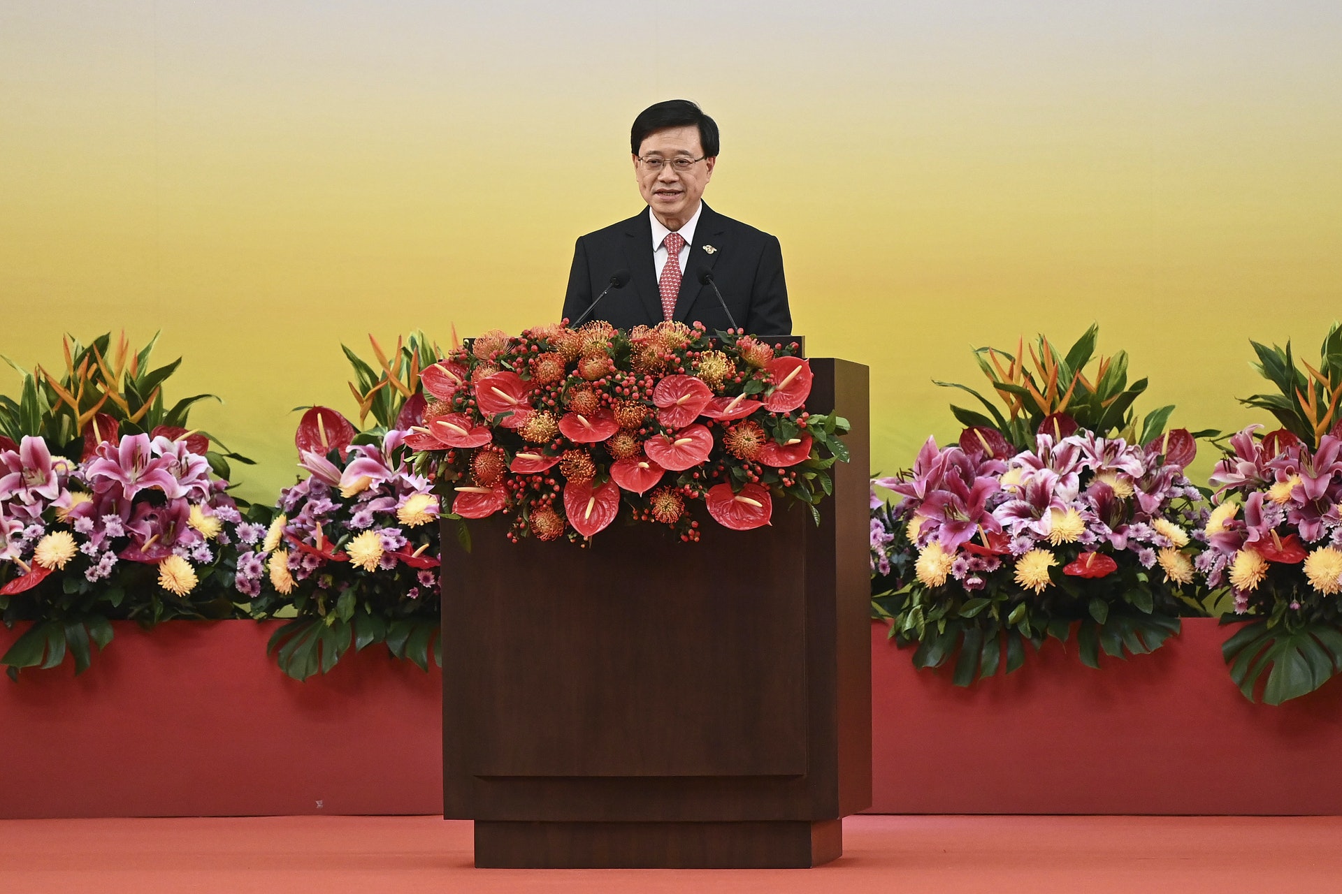 まず、李家超(ジョン・リー)行政長官が習主席に行政長官就任の宣誓。次に「3司15局」の長官・局長ら主要官員が揃い、代表して政務官の陳國基(エリック・チャン)が習主席と李長官に宣誓。さらには閣議に相当する第6期の行政会議メンバーが習主席と李長官に宣誓。